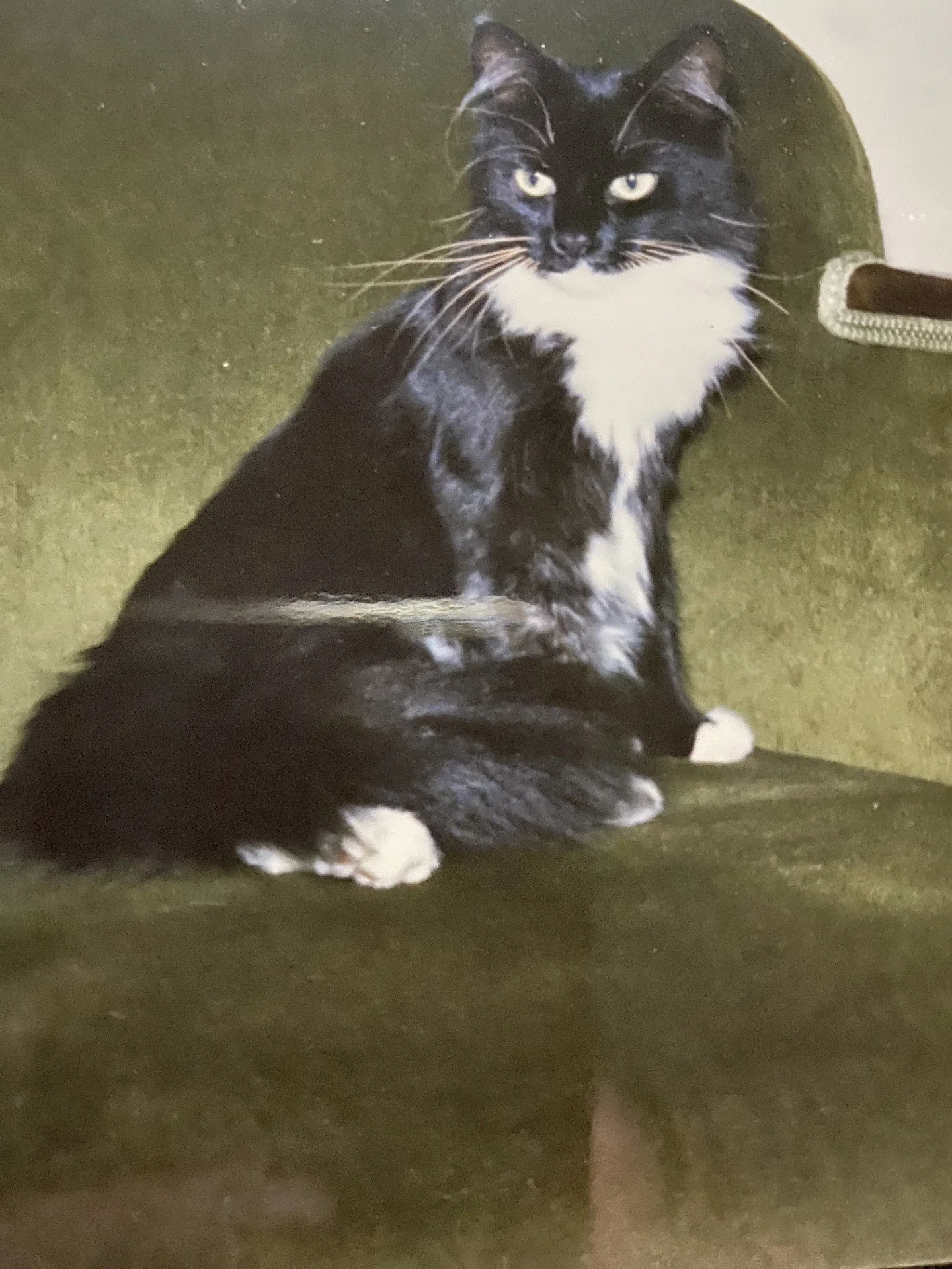 Acquired when I was four months old, Tosca, the tabby, was always around for me, through babyhood, childhood and adolescence. When I was 18, sitting in a Psychology class, I suddenly couldn’t breathe and had to go out to get some fresh air. I found out that evening that was the exact time Tosca died. I would like to be able to say that I always knew when my animals died if I wasn’t with them, but that’s the only time it has happened, so far.