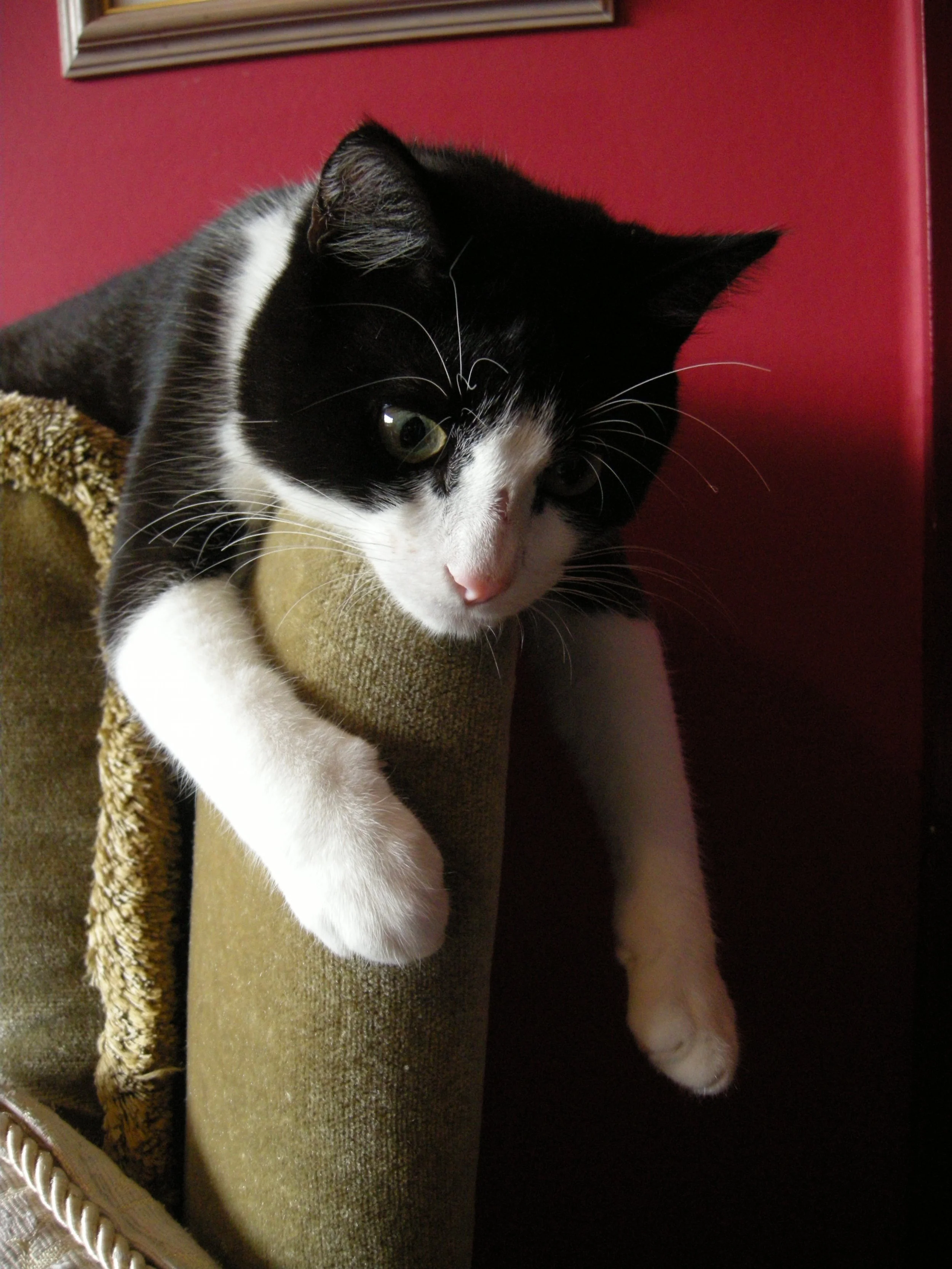 Acquired from a rescue organisation at 14 weeks of age, Buzz was described as Naughty but Nice, which has fitted him perfectly ever since. He became an indoor cat on the death of Stripey Cat, 10 days after we had acquired him. Buzz runs his life in his own way and expects everyone else to do the same. All the dogs who come into the house behave exactly as he wishes and mostly, people do too.