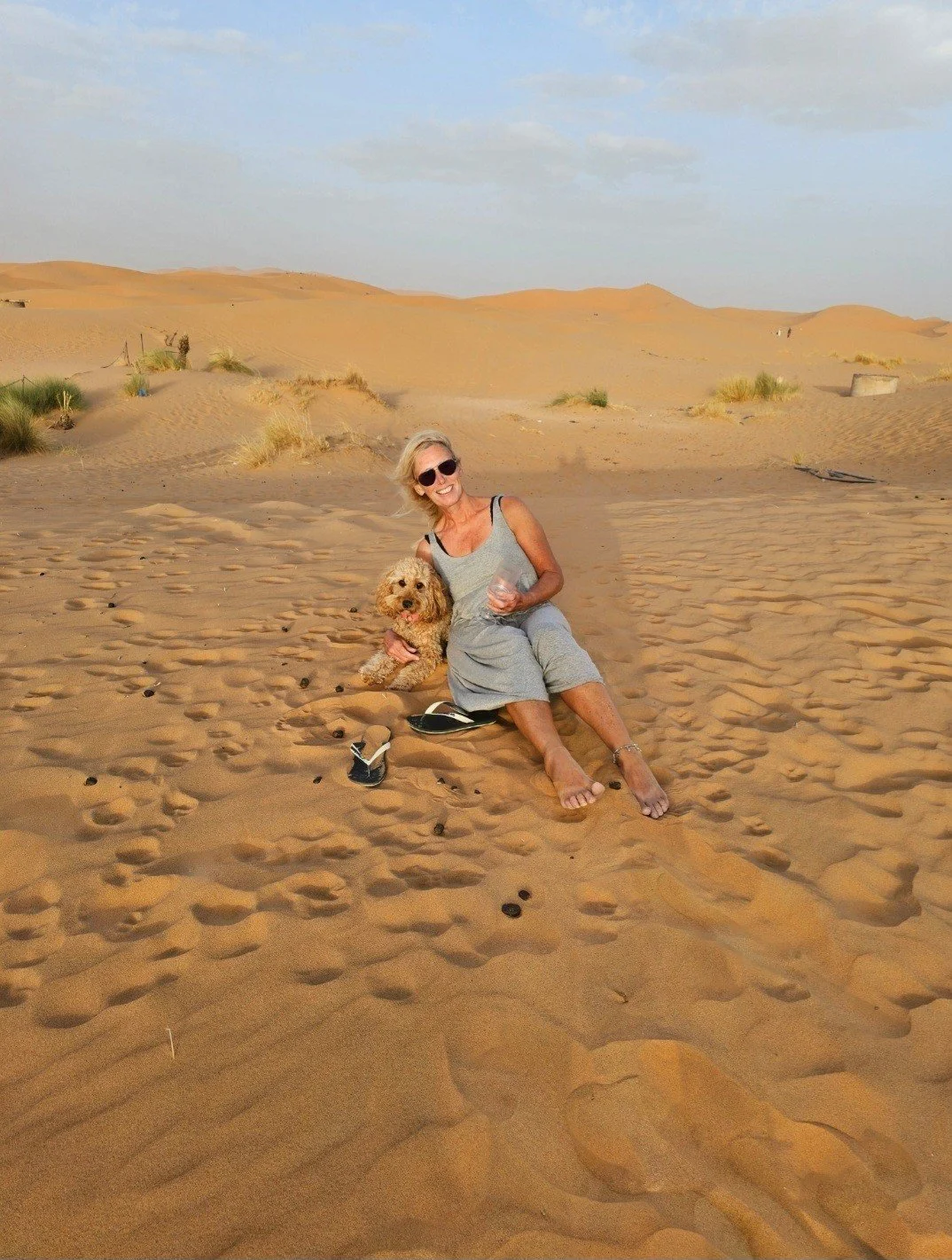 As committed dog owners we knew we needed help in managing Nutmeg’s fear based behaviour. We sought Erica's expertise & with her calm, logical, kind approach we started to see some progress. She went above and beyond to help us and was always willing to answer questions between sessions. With her methods, hard work & determination Nutmeg has made tremendous progress. She's now able to be left for around 4-5 hours and is better around people & in busy places. Nutmeg really is living her best life. Here's a pic of her in the Sahara desert Morocco.