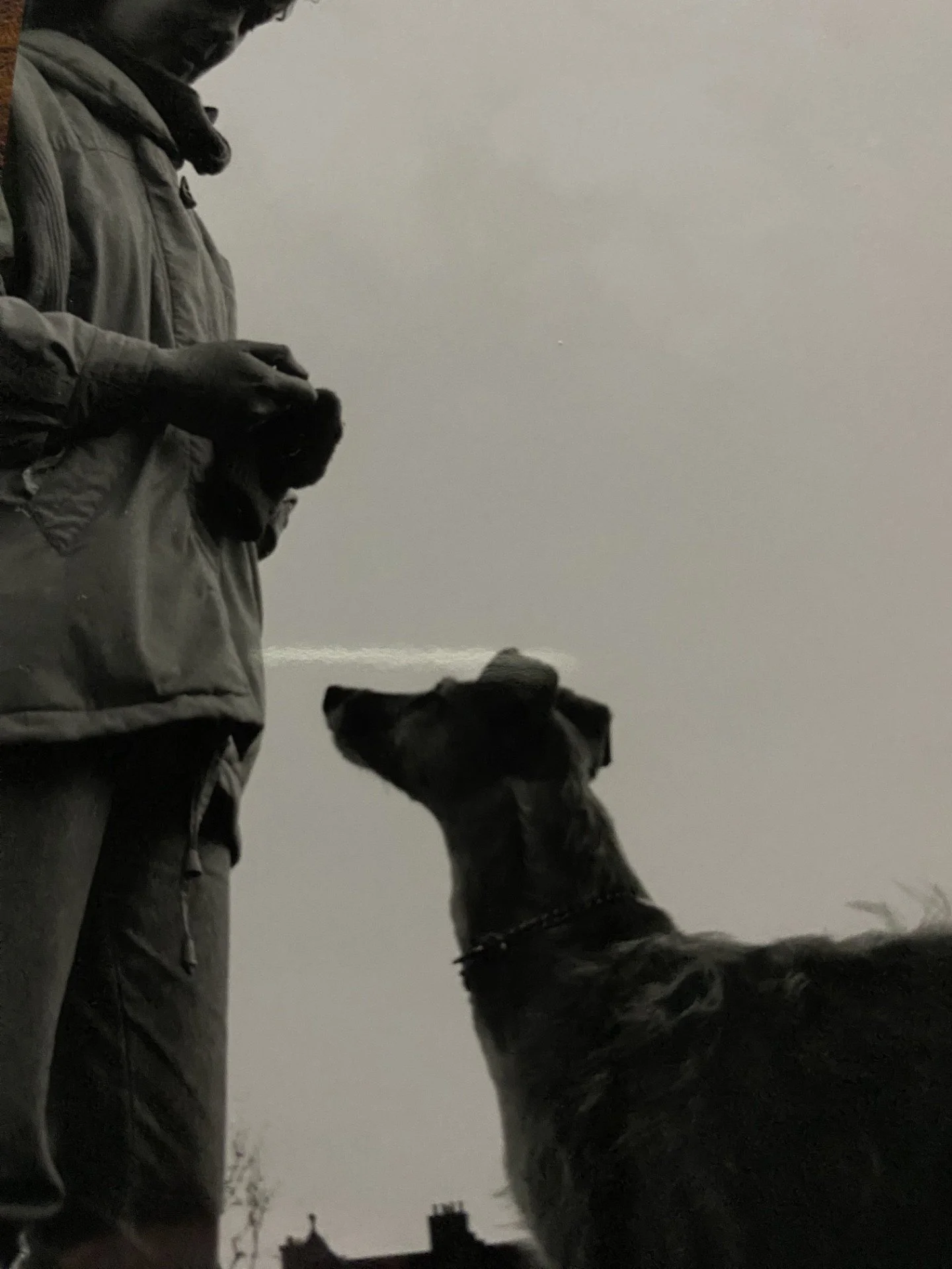 A little feral lurcher living wild in Sheffield for around three years, covered in scars, inside and out. As far as I know, I was the first person to touch her for years. It took her a long time to forgive me for that. Timid and independent, Sadie and I learnt so much together. She had to come everywhere with me, as I couldn’t leave her for the first couple of years as she destroyed everything when left alone - she came to work with me, to parties and on dates. I thought I had been learning about dogs. Sadie told me I knew nothing. We learned about each other together.