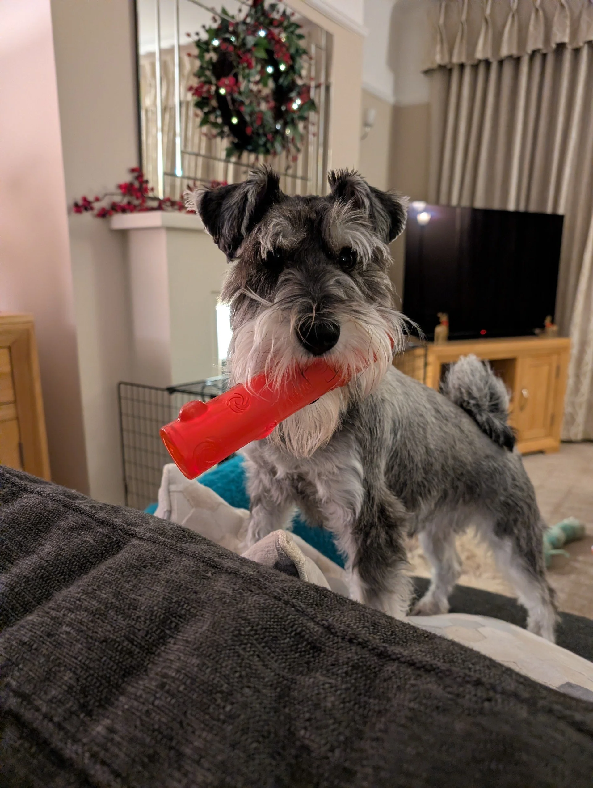 Im pretty sure though if I ask Finn what he most apprecaites it would be your legendary Christmas parties. He’s never got over the thrill of winning the ‘who can eat a Bonio the fastest’ competition! Here he is wanting another go….